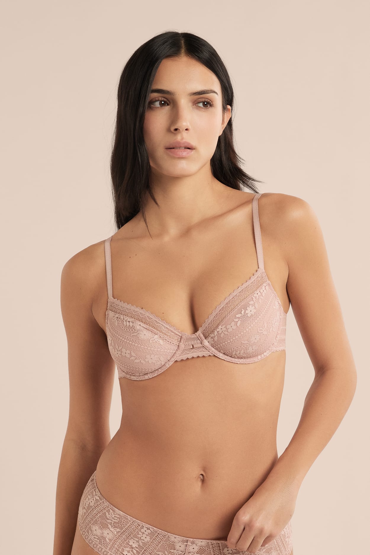 Zwischen Subtilität und Verführung ist dieser BH aus feiner Spitze gefertigt. Er ist mit Bügeln ausgestattet, um Halt zu gewährleisten, und mit Details an den Trägern für eine moderne und raffinierte Note.