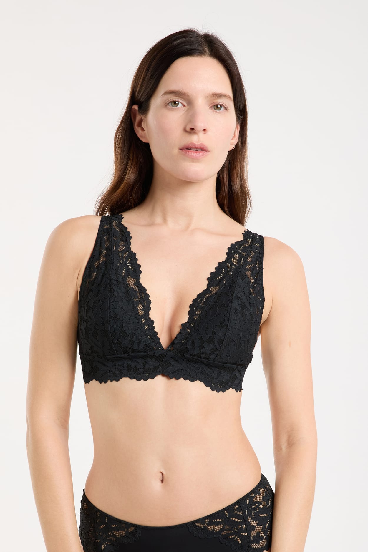 Dieser Triangel-BH ohne Bügel präsentiert unsere neue florale Spitze. Angenehm zu tragen, ideal für ultimativen Komfort im Alltag.