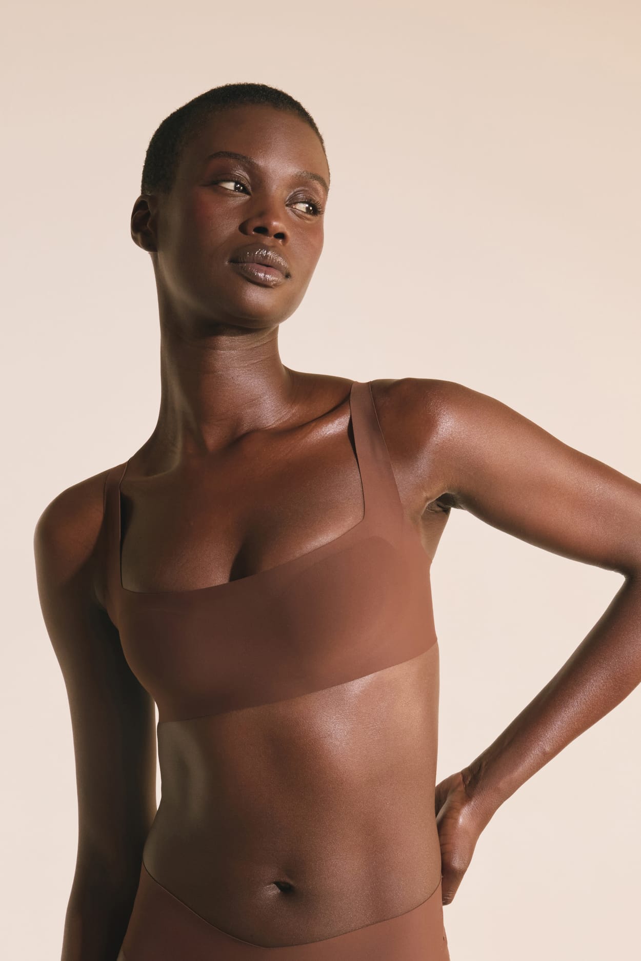 Coupe carrée et pads amovibles : cette brassière en microfibre lissante repulpe le décolleté, tout en offrant confort absolu.