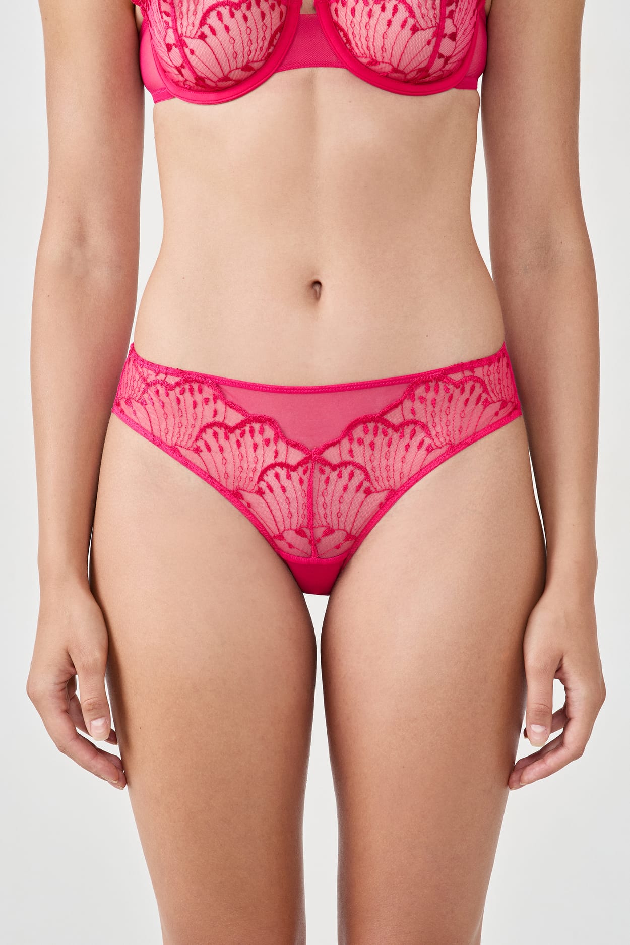 Zart und raffiniert kleidet sich dieser Hipster aus transparentem Tüll in zarte Stickereien....
