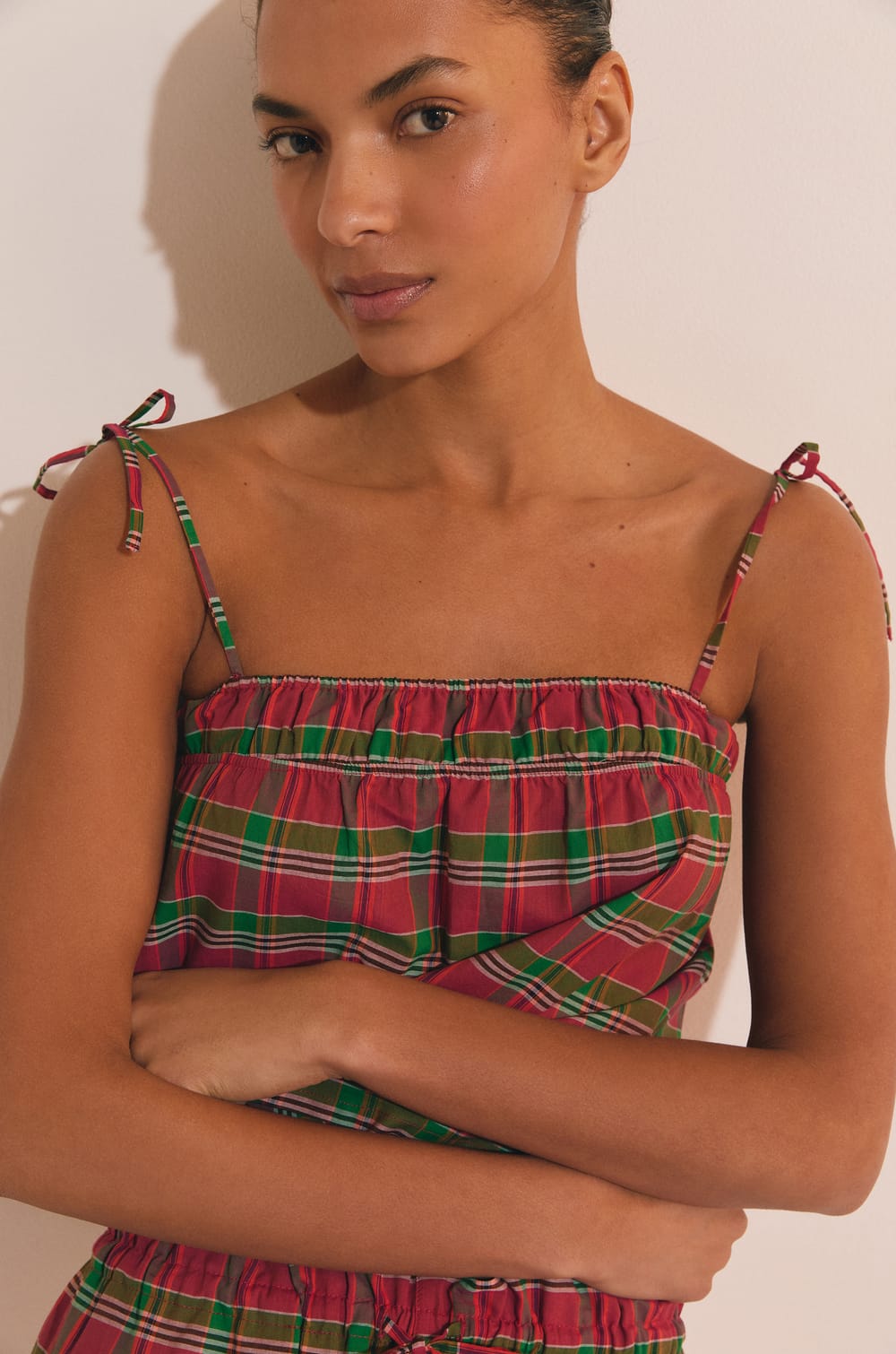 Caraco de pyjama à carreaux en coton;${refinementColor}