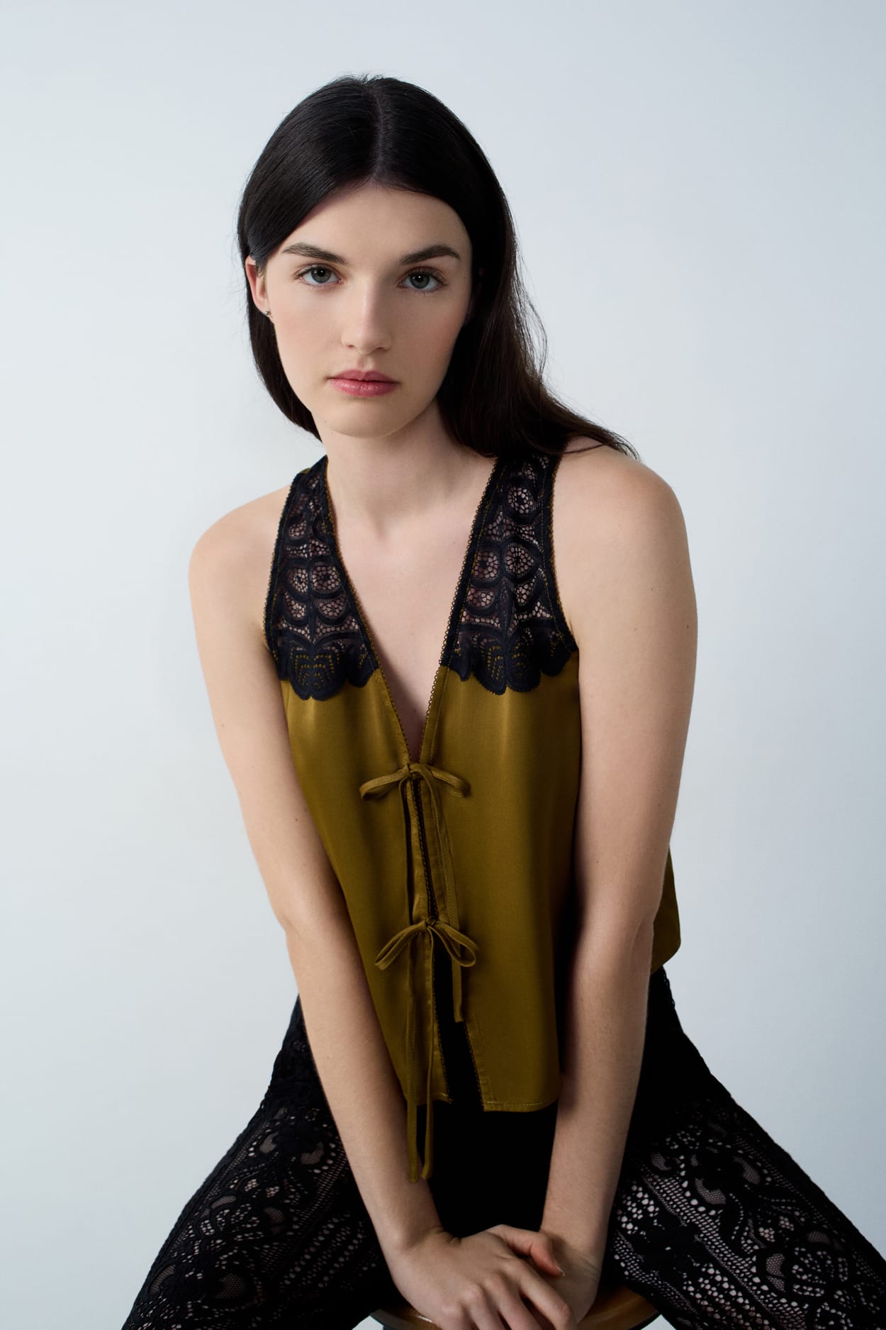 Ce débardeur satiné est une pièce clé pour des nuits tout en douceur. Avec sa dentelle délicate sur les épaules et ses l...