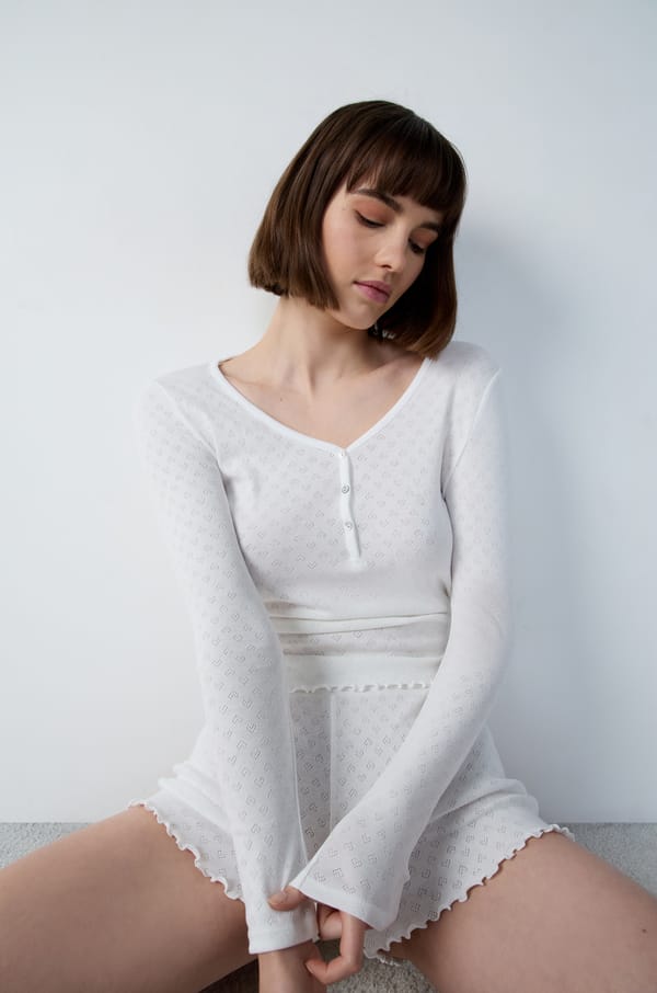 T-shirt manches longues en coton pointelle;${refinementColor}