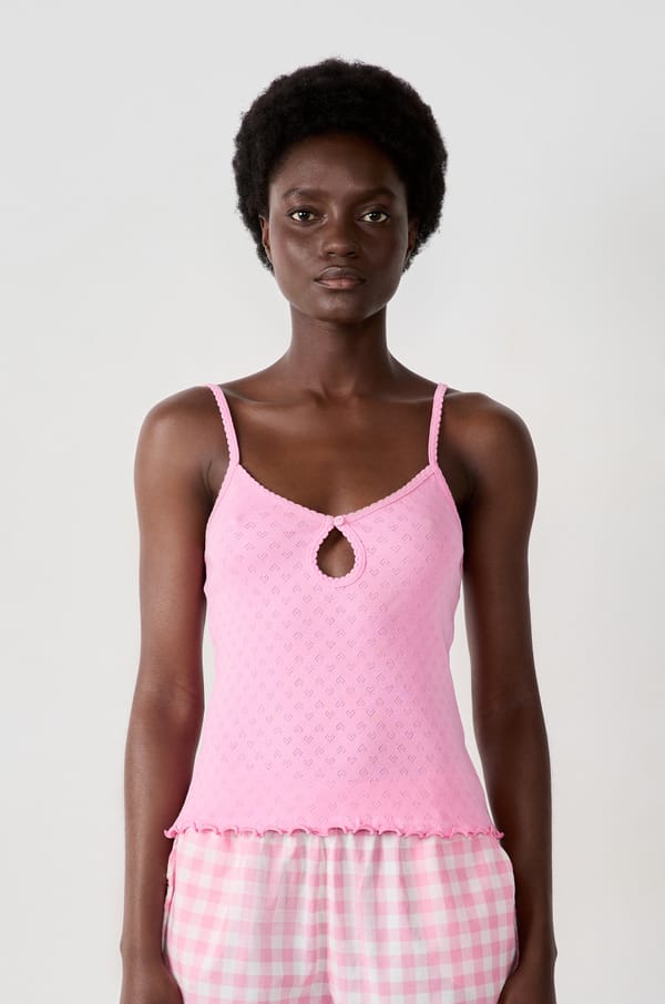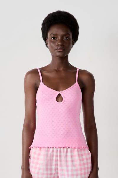 Débardeur en coton en pointelle imprimé cerises;${refinementColor}