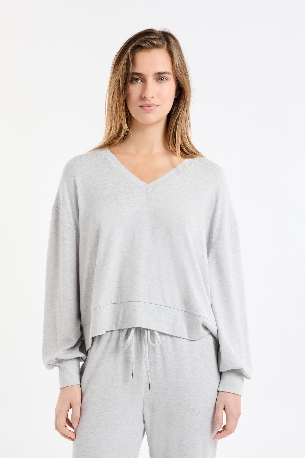 Confectionné en matière douce, ce sweatshirt manches longues est muni d'un col V. Il opte pour une coupe large. Idéal po...