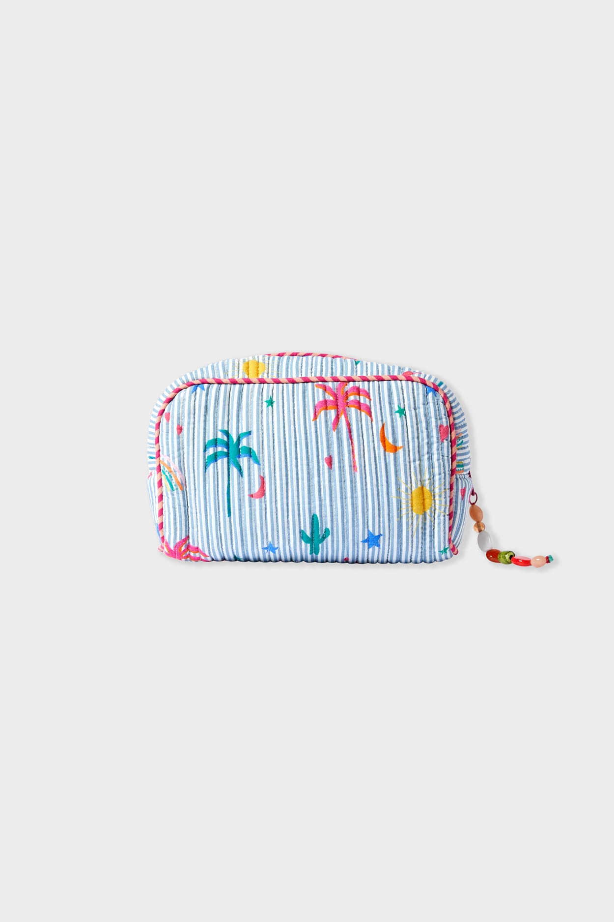Les motifs estivaux s’invitent avec style : lune, palmier et soleil ornent cette trousse matelassée. Son zip se pare d’u...